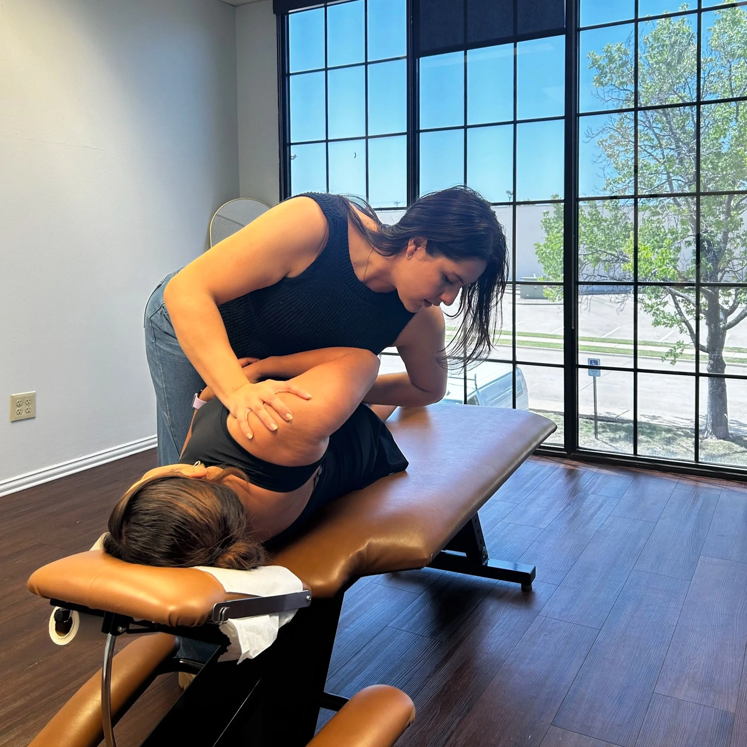 A chiropractic adjustment is a gentle, hands-on technique used to help improve how your spine and joints move. Over time, stress, posture, or injuries can cause certain areas of the body to feel stiff, tight, or out of balance. An adjustment helps restore natural movement, ease tension, and support how your body functions overall.